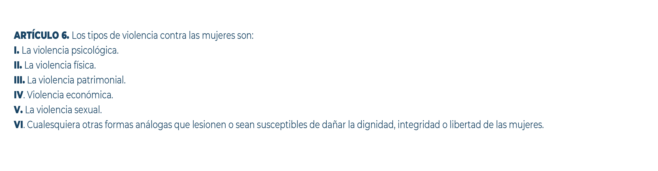Ley General de Acceso a las Mujeres a una Vida Libre de Violencia (artículo 6°)